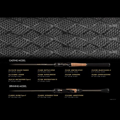 [表記一覧] 長さ:6’7” サブネーム:BLACK THEMIS ウェイト:117g ルアーキャパ:1/8~1/2オンス ラインキャパ:6~12ポンド