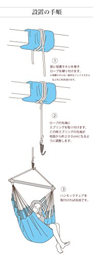 出典: https://www.amazon.co.jp/Vivere-%E3%83%93%E3%83%96%E3%83%AC-%E5%85%A8%E7%B1%B3%E3%81%8C%E6%84%9B%E3%81%97%E3%81%9F%E3%83%8F%E3%83%B3%E3%83%A2%E3%83%83%E3%82%AF%E3%83%81%E3%82%A7%E3%82%A2-%E3%83%87%E3%82%B6%E3%83%BC%E3%83%88%E3%83%A0%E3%83%BC%E3%83%B3/dp/B01M03SAN7/ref=sr_1_13?s=sports&ie=UTF8&qid=1499088380&sr=1-13&keywords=%E3%83%8F%E3%83%B3%E3%83%A2%E3%83%83%E3%82%AF%E3%83%81%E3%82%A7%E3%82%A2室内に設置する場合はこのように設置します。 【用意するもの】 ・梁 ・フェイスタオル 【注意点】 ・梁を傷つけないように、丁寧にタオルを巻くこと。 ・ロープはタオルのちょうど真ん中あたりにくるようにし、丁寧に巻きつけ、縛る事。 (せっかく巻いたタオルからロープをはみ出さないためと梁を傷つけないため。)