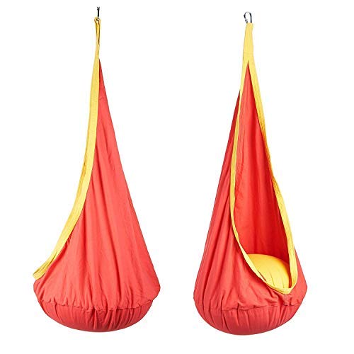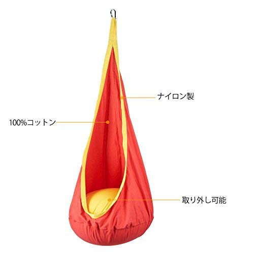 一風変わったデザインで、しずく型でころんとしたハンモックチェアです。きっと子供が喜ぶデザインのハンモックチェアではないでしょうか。 アウトドア先で木に吊るしたり、室内では子供部屋に設置なんてこともできますね。また自立式スタンドを使っての設置も良いのではないでしょうか。 こちらは子供用のハンモックチェアとおもいきや、実は79Kgまで耐重できます。インテリアとして活用しても良いですね。 ※スタンドは別売りです。