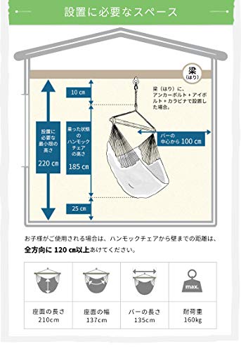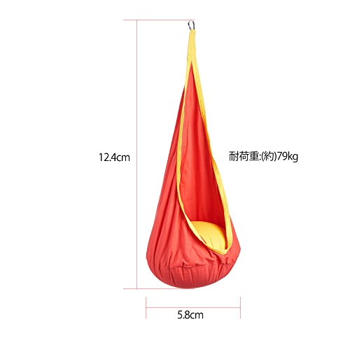 ◆素材 ・ハンモックチェア:ポリエステル ハンモックチェアというよりはほとんどブランコに近いと思います。 公園まで遊びに行かなくても自宅に設置をすれば雨の日でもブランコに乗った気分になれます。 かわいらしいデザインですのでインテリアとしても活躍してくれそうです。