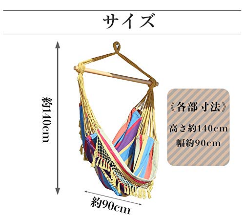 ◆素材 ・ハンモックチェア:コットン ・バー素材:天然木 ◆耐荷重 ・90kg迄 ◆セット内容 ・けん引ロープ