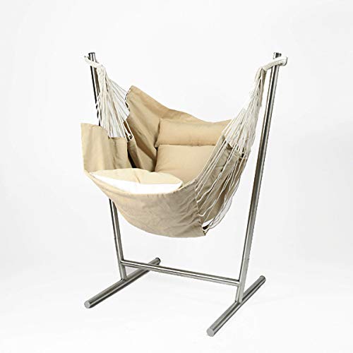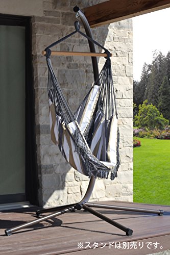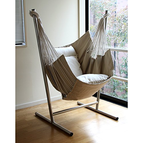 包まれるような乗り心地となっていて、クッション性と安定性に非常に優れています。 ズック生地で夏場涼しく、アウトドア先になんていかがでしょうか? ちょうどいま時期にぴったりですね。 また、ほかのハンモックチェアにはなかなかないマクラがついているのは魅力的でほか商品との大差ポイントだと思います。 こちらは価格も比較的に安価の方で、大人から子供まで幅広く利用されるのはいかがでしょうか。 ※スタンドは別売りです。