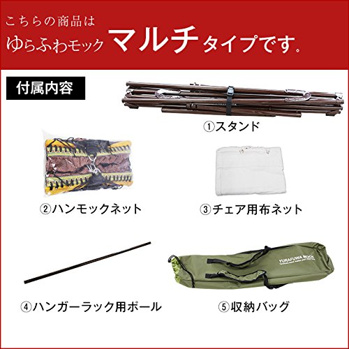 ◆素材 ・スタンド、ポール:鉄 ・ネットハンモック:ポリエステル ・布ハンモック:コットン ◆耐荷重 ・自立式ハンモック時:330Kg ・ハンモックチェア時:200Kg ・ハンガーラック時:均等に配置して25Kg ◆セット内容 ・スタンド ・ハンモックネット ・チェア用布ネット ・ハンガーラック用ポール ・収納バッグ
