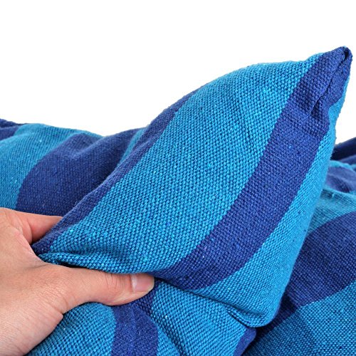 ◆素材 ・材質:100%コットン ・PVC空気充填クッション ◆耐荷重 ・約79kg ◆セット内容 ・ハンモックチェア本体のみ