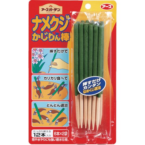 木串に塗りつけてある薬剤をナメクジが食べ、退治されます。 花壇や畑に挿すだけなので簡単ですし、土を汚染しません。 (薬剤部分が土に触れないように挿して下さい)