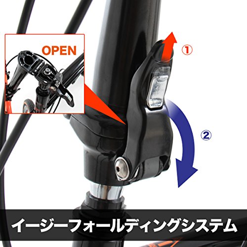 ・全長:1720mm ・折りたたみ寸法:1010×950×450 mm ・重量:13.5 kg ・サドル高:890-1070mm ・ハンドル高:930mm ・ハンドル幅:400mm ・タイヤサイズ:700×28 C ・フレーム材質:スチール ・変速機:シマノ14段変速 ・フリーホイール:MIN:14T×MAX:28T ・チェーンホイール:34×50T ・ブレーキ前後:キャリパーブレーキ ・付属品:カセット式BB/組立工具/リフレクター/ベル/ ・取扱説明書(保証書含む)