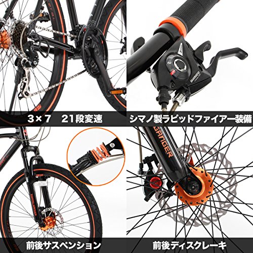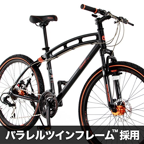 ・フレーム材質:アルミニウム ・フロントフォーク材質:スチール ・重量:13.6Kg ・サドル高:830〜970mm ・ハンドル高:960mm ・ハンドル幅:560mm ・タイヤサイズ:700×28C ・フレームカラー/ツートンカラー:D-orange(D-オレンジ「)×SupremeBlack(シュプリームブラック) ・変速機:シマノ21段変速 ・ペダル:固定式ペダル VP-990A