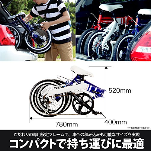 ・折りたたみ寸法: 800 × 640 × 360 mm※ペダルは含まず。 ・重量:約 12.1 kg※ペダル、保安部品を取り外した状態です。 ・サドル高: 670 - 895 mm ・ハンドル高: 1000mm ・タイヤサイズ: 20 × 1.5 inch ・フレーム材質: アルミニウム ・変速機: シマノ7段変速