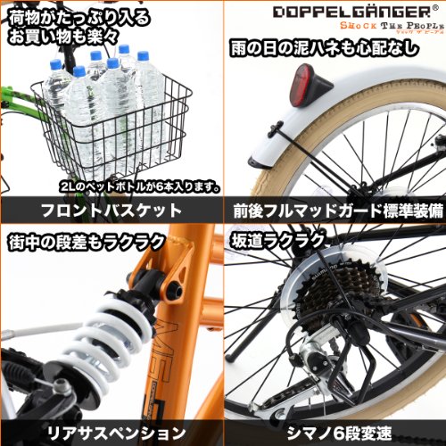 出典: https://www.amazon.co.jp/s/ref=nb_sb_noss_1?__mk_ja_JP=%E3%82%AB%E3%82%BF%E3%82%AB%E3%83%8A&url=search-alias%3Dsporting&field-keywords=%E3%83%89%E3%83%83%E3%83%9A%E3%83%AB%E3%82%AE%E3%83%A3%E3%83%B3%E3%82%AC%E3%83%BC+%E3%83%9F%E3%83%8B%E3%83%99%E3%83%AD&rh=n%3A14304371%2Ck%3A%E3%83%89%E3%83%83%E3%83%9A%E3%83%AB%E3%82%AE%E3%83%A3%E3%83%B3%E3%82%AC%E3%83%BC+%E3%83%9F%E3%83%8B%E3%83%99%E3%83%AD自転車をフランス語でベロということから、小さい自転車のことを「ミニベロ」といいます。コンパクトで見た目も可愛く、小回りが利くので、タウンユースにおすすめの自転車です。 ドッペルギャンガーのミニベロは、細身のパイプとシンプルなデザインが特徴的。しかも軽量なので、女性にもおすすめできます。