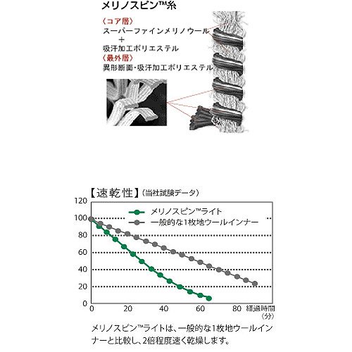出典: http://item.rakuten.co.jp/sakaiya/10061501/メリノウールと高機能ポリエステルのハイブリット生地。長期の縦走登山にも嬉しい調湿性・抗菌消臭機能に加えて、速乾性も併せ持つ機能性アンダーウエアです。メンズ・レディース共に長袖(クルーネックとジップアップタイプ)・半袖の展開あり。