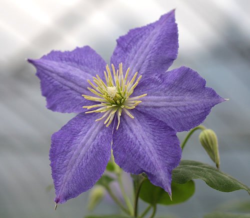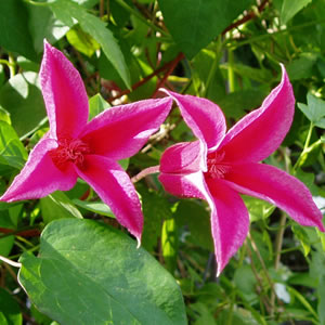ジャックマニー系は、前年に伸びた枝は枯れ、新たに新梢が長く伸び、その節々に花が咲く新梢咲きという咲き方をします。 中・大輪系の華やかなクレマチスです。