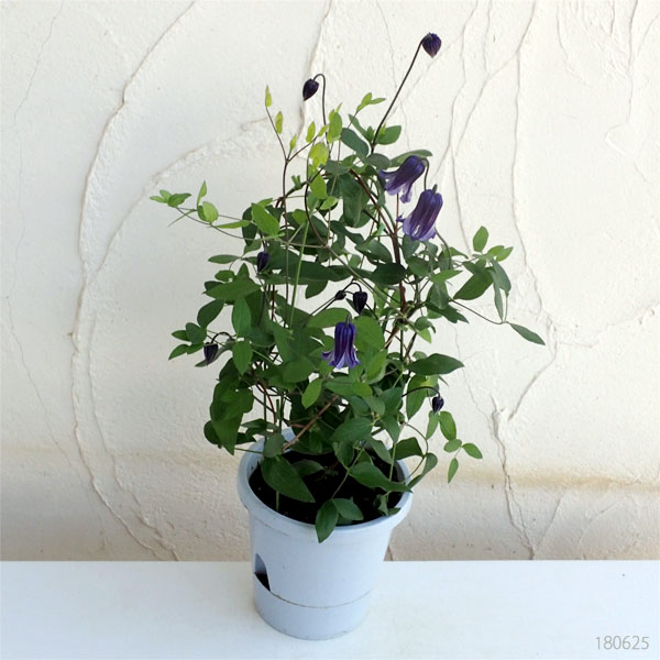 開花期 4~10月 花径 4~5cm 【旧枝咲き・弱剪定】 半鐘形の濃い青紫の花を咲かせます。 暑さに弱いので、鉢植えにして涼しい場所で管理すると良いでしょう。