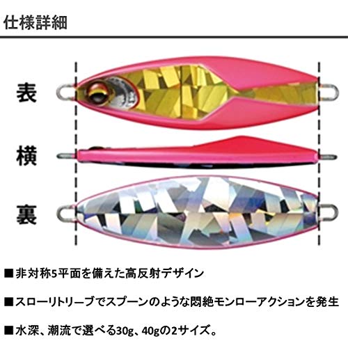 遠投がきく重めのメタルジグです。 非対称構造で、スプーンのようにひらひらと、 艶めかしいアクションでヒラメを誘います。