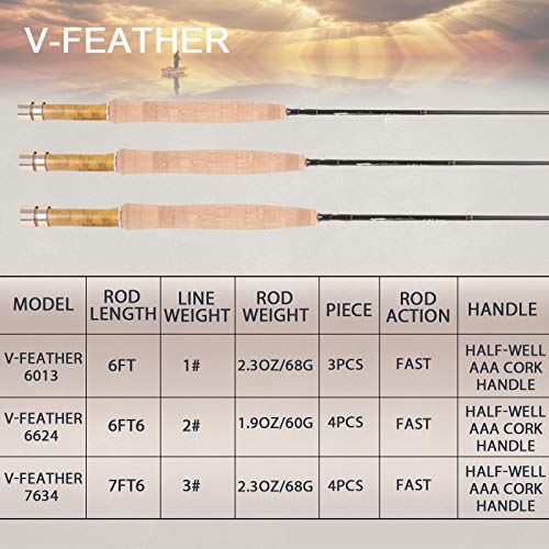 Maxcatch ミディアムファースト フライロッド 4ピース トラウト フライフィッシングロッドIM10ロッドチューブ付き (1ウェイト6ft 3ピース)