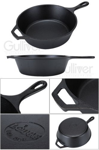 【スペック】 ・サイズ:全長/約42cm、内径/26cm、深さ/8.2cm ・重量:2.96kg ・鋳鉄製 ・IH対応製品 深さのあるスキレットです。 煮込み料理、炒めてから煮込む料理に最適です。