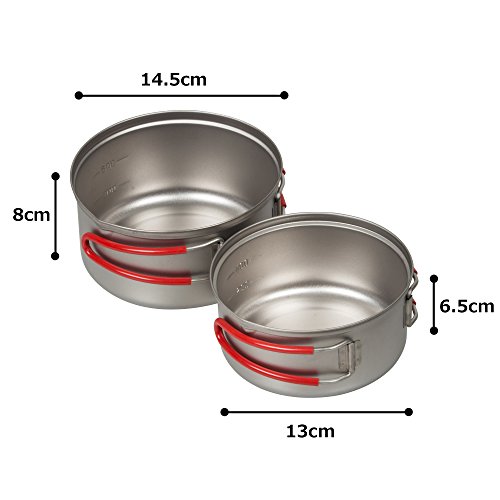 お鍋が2つセットになっていて、蓋の部分と本体の部分とに分かれます。 蓋はフライパンや食器の役目を果たし、深い胴体部分ではお湯を沸かしたり、炊飯等が出来ます。