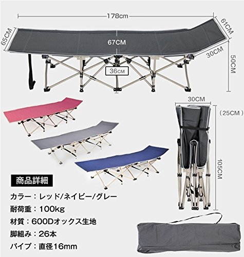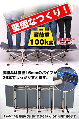 手頃な価格ながら、とってもタフなコット。サイズは十分に広く、頑丈ななスチール製でその分、重さは9kgと重いですが、安定感は抜群。ベンチにも荷物置きにも便利です。組み立てやすいバー付きフレームで力もいらず、使い方も簡単です。スチール製なのでサビやすいため、おて手入れは丁寧にした方が良いですね。