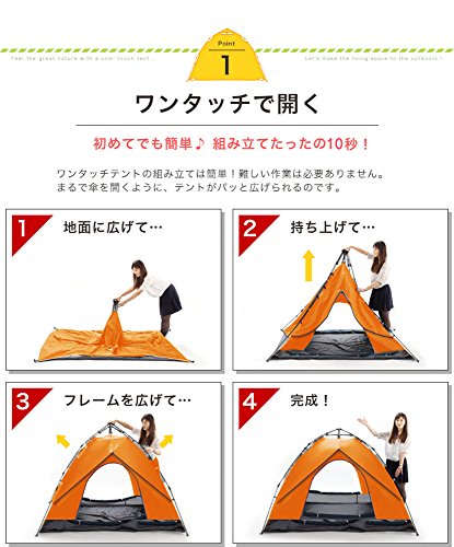 MRG| ワンタッチテント オレンジ フルクローズタイプ 2~3人用