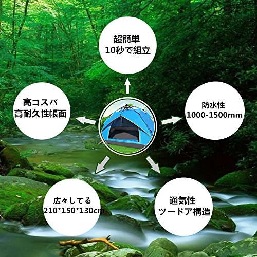 Lesoom ワンタッチ テント 2人用【二層構造 縫い目テープ加工 防水防雨】210*150*130cm 15秒で組立 簡単テント キャンプ テント ワンタッチ ポップアップ テント フルクローズ