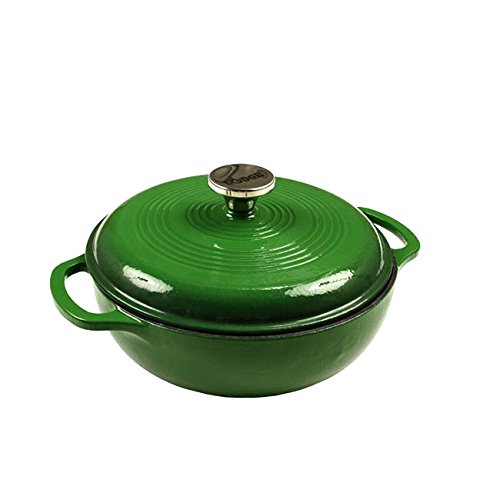 ロッジのエナメルキャストアイアンのダッチオーブンです。 どちらかというと、キャンプで焚き火を使ってというより家庭のキッチンで使う場合が多いタイプです。 二重にガラスコーティングされているので、お手入れは大変楽です。