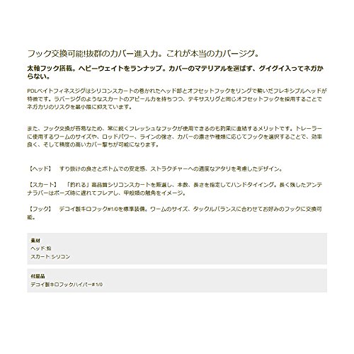 ベイトフィネスジグには フックポイントがやや内向きで ワームをしっかりキープ、 柔軟性によるバレにくさも 評価の高いキロフックが標準装備されています。 テキサスなど他のリグでも 人気の高い製品なので実績は抜群、 フック交換無しでもバッチリ楽しめます。 どのフックに交換したら良いか 迷ってしまう初心者の方は 初期のセッティング、 デコイのキロフック#2を セットしておきましょう。