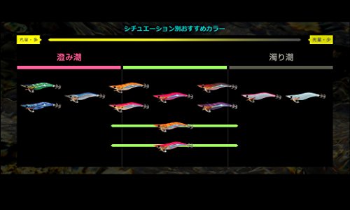 3.5号の長さを基準に 複数のカラーをローテーション、 当日のアタリを見つけるのが エギの基本的な使い分けですが アクションや沈降速度を替える事で さらに幅のある使い分けが楽しめます。 自分の予測、試行錯誤に対して 反応が返ってくる事も ルアーゲームの面白さなので 自分の釣り方、釣り場に合った パターンを探しながら エギングを楽しんでみてください!