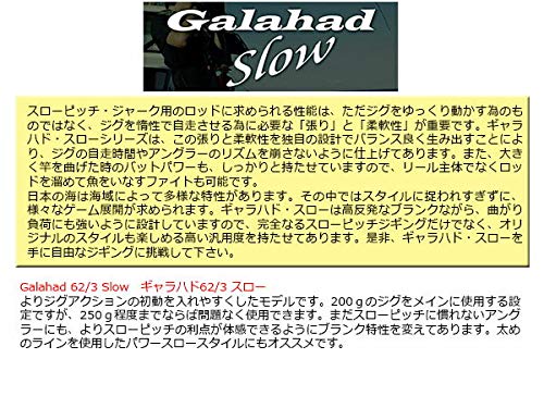 ヤマガブランクスの「ギャラハド62/3 Slow」です。価格は定価45,100円(2022/6/14現在)、スローなピッチで ジグをソフトに跳ね上げて自発的なスライドで低活性な魚にスイッチを入れるスロージギングに対応するシリーズです。