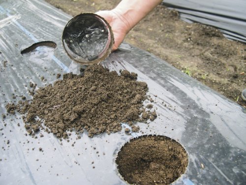 黒ビニールは太陽熱を吸収して地温をあげる効果があるので、野菜が育ちやすくなり、冬や春にかけてはおすすめのマルチング素材です。ただ、真夏は地熱の上昇し過ぎと、太陽熱の照り返しで葉っぱが日焼けするので、根元に腐葉土や土をかぶせるという処置が必要です。また、乾燥のし過ぎを防ぐために、最初にマルチを貼るときは、雨の降った後など地面がある程度湿っているときがおすすめです。タマネギなどの苗を植えやすいように、最初から均等に穴があいているものもあり、穴をあけるための道具もあります。注意することは、家庭菜園でも端をしっかりピンでとめるなどやり方があり、畑でマルチを貼るときは風のない日に行うなどです。