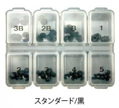 やわらかいタイプのガン玉で指先ではさんで取付が可能なおすすめセット商品です。 ケース表面にはガン玉のサイズの表示がついていて一目でわかります。 セット内容がG3(3号)、G2(2号)、G1(1号)、B、 2B、3Bとなっています。