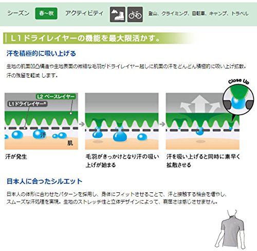 ドライレイヤー:registered:L1との ベストなレイヤリングによって、最適なドライ感を保持してくれる素材になっています。