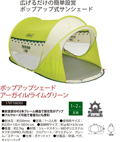 コールマン|ポップアップシェード アーガイル×ライムグリーン 170T16650J