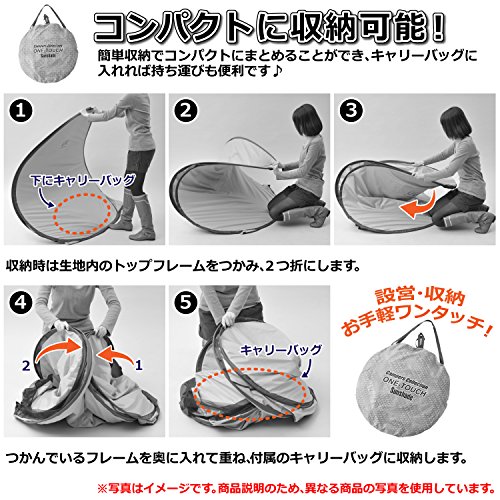 比較的コンパクトな大きさなので、女性や初心者が一人でも設営できますししまい方も簡単です。前後左右がメッシュになるので風通しがいいです。内側にはポケットや物を引っかけられるフックがついているので便利です。入り口が少し高くなっているので砂などが入りにくいので安心です。 カモフラージュ柄がおしゃれで、公園などでも目立つものを選びたい方には人気です。