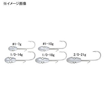 大手釣り具メーカー ―「がまかつ」のジグヘッドです。 大きなシングルフック (針)が付いている形状をしています。 大型のターゲットを相手にする場合、強度の高いフック (針)が必要不可欠ですが、長年釣り針の製造に携わってきたメーカーの商品ならではの、確かな強度と貫通性能を実感できるジグヘッドです。