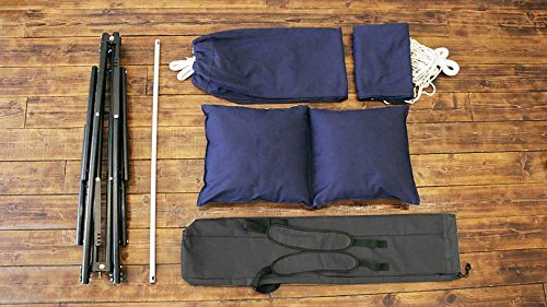 ハンモック|自立式 折りたたみ スタンド 収納袋付き ブルー × アイボリー ロングサイズ ポータブルハンモック