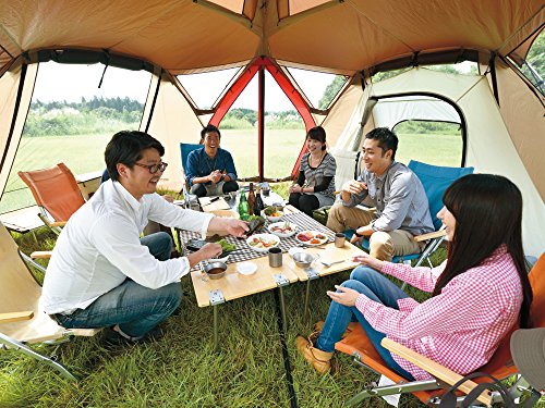 スノーピークの定番テントです。テントに入るまでの空間、前室が広いので、荷物を置いたりちょっとした炊事をしたりと非常に使い勝手がよいのが高評価です。前室に別売のアメニティドームアップライトポールセットを使うことで、タープのように開放的な空間を作り出すことができます。ちょっとした椅子を置いて、日陰の空間でのんびりするには良さそうです!