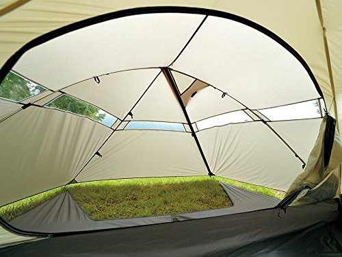 リビングシェルロング Pro.は メッシュ部分をさらに広くした、通気性抜群の4〜6人用のシェルターになります。 側面のほぼ全面を メッシュ部分にすることによって、リビングシェル内の通気性を格段に向上させているのです。 リビング内で 家族4人がテーブルを囲むのにちょうど良さそうなサイズですね。 ベンチレーター付の 大型メッシュ仕様のシェルターなので、通気性も良く、快適なリビング空間を作り出してくれます。 別売りの リビングシェルロングPro.インナールームをつけることで、2ルームテントしても使用できる評判の良い商品なのでおすすめですね。 使用サイズは 430×400×210(h)cmとなっています。