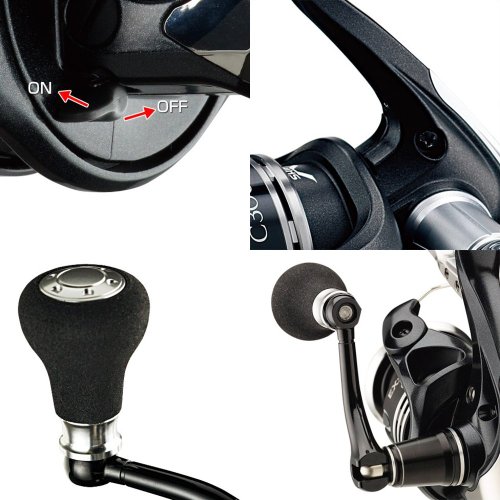 シーバス専用のスピニングリールです。 ブレーキバーの操作でライン放出の切り替えを行いシーバスが 遠くに逃げてもドラグでやり取り出来るようになっています。