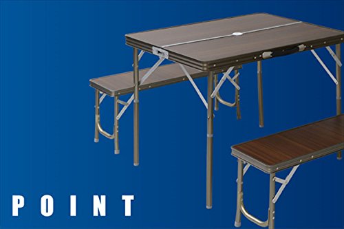 ■選び方 4人用となりますので、 大人数というよりも小さいお子様をお持ちの家族や少人数でのキャンプをされる方におすすめ。 二つ折りになるテーブルの中にベンチが2つ収納されるオールインタイプ。 持ち運びも便利なので、バーベキューをされる方にもおすすめしたいですね。 初めてテーブルセットを検討されている方はまずはこちらを購入すれば間違いなしです。 ■商品概要 サイズ:テーブル/約80×70×高さ65cm、ベンチ/約78×25×高さ35cm、収納時/約80×10.5×高さ35.5cm 重量:約9.2kg 材質:フレーム/アルミニウム、天板/メラミン加工合板 耐荷重:テーブル/約30kg、ベンチ/約140kg(70kg×2)