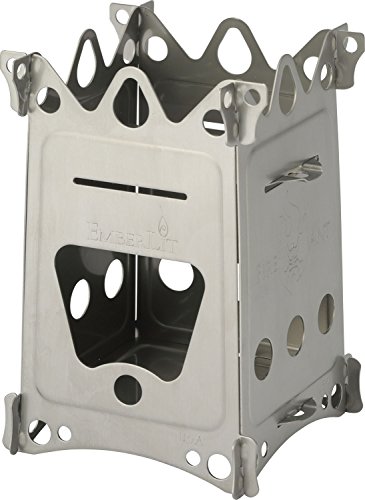 エンバーリットは、枝を燃料とする小型のソロ用の焚火台、ストーブ。5枚の金属製(チタンとステンレスの二種類あり)の5枚のスレットの入った板を組み合わせるだけのシンプル構造で、持ち運びの際は、5枚の板を重ねてフラットに収納でき、場所をとりません。 そして、サイドに一ヶ所口が空いていて、そこから長い枝も少しずつ投入して燃やす事が可能な素晴らしいデザイン! また、小さいけれども力持ちで、そのまま上に鍋を置くことができ、湯沸かしや調理も可能。 ソロキャンプや、バイクツーリングなど持ち物を少なくしたい時には、本当におすすめです。焚火台、防寒対策、調理用のストーブとコンパクトながら実用性も兼ね備えたおすすめ焚火台です。