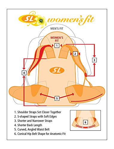 女性の登山でも 小屋泊まりや日帰りだと、ザックの重量が5~10kgほどになり、テント泊での縦走登山ともなれば、15kg超えのザックの重量になることも十分あるので、ザックのフィット感は大切になってきます。 女性の体にフィットさせた レディース専用のSL(スリムライン)モデルがあり人気になっています。 SLモデルは 黄色いゆりの花が付いているので、売り場でも見つけやすいですね。