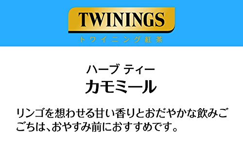 紅茶で名高いトワイニングの商品です。創業300年を超えるロンドンの老舗であり、品質への安心感があります。こちらの商品は、無香料、無着色です。カモミールだけで作られており、ノンカフェインなので、おやすみ前に飲むこともできます。ティーバッグなので、ティーポットいらずで手軽な使い方ができます。