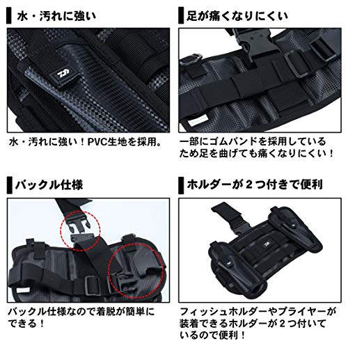 太腿に固定できるタイプのホルスターです。プライヤーホルダーとフィッシュグリップホルダーが付いており、ロッドホルスターの取り付けも可能。上半身が自由になるので、思う存分釣りに没頭することができます。
