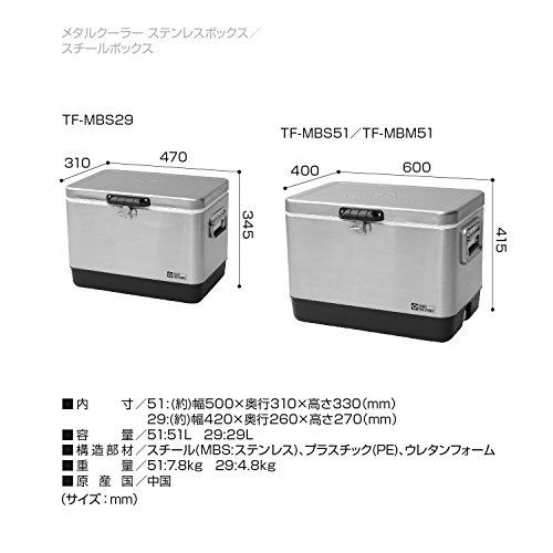 製品情報 ・本体サイズ:幅62×奥行40×高さ42cm ・本体重量:7.25kg ・材質:ステンレス、ポリプロピレン、ウレタンフォーム ・原産国:中国 ・容量:51L (350ml缶83本収納可能)