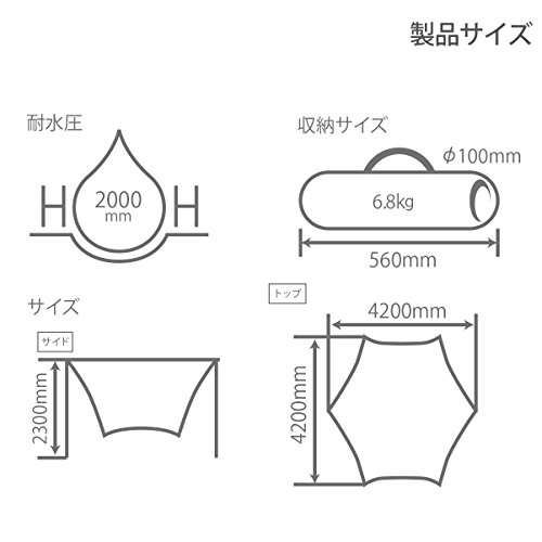 設営サイズ:(約)W4200×D4200×H2300mm 収納サイズ:(約)直径100×長さ560mm 重量:(約)6.8kg