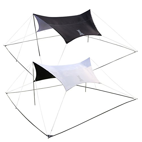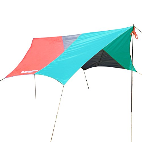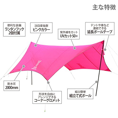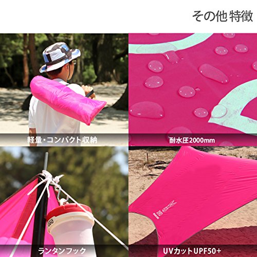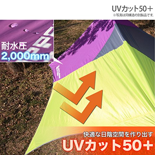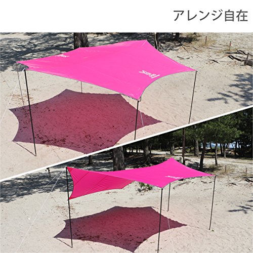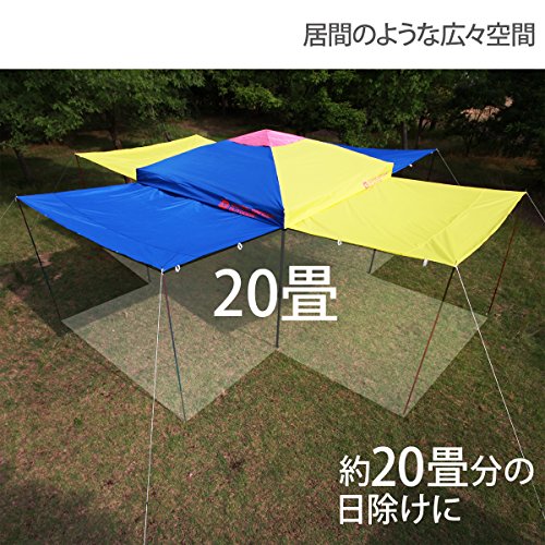 クレイジーカラーを採用した 左右非対称のカラフルな柄なので、もう自分のテントサイトに迷うことはありませんね。 カラフルなだけではなく タープの全コーナーにグロメットを装備してあるので、タープポールを追加することによって、タープの形状をアレンジでき、しかもランタンフックなども付いているので使いやすいおすすめのヘキサタープです。 さらに UVカット50+という生地が使用されているので、紫外線を効率よくカットしてくれて、ナチュラルな光を浴びる快適な日陰を作り上げてくれますね。