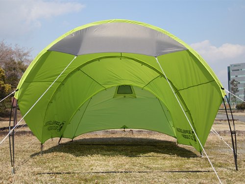 間口が広く食事の煮炊きからバイクの駐車まで問題無く行えます。 設営方法も簡単です。 唯一の欠点はペグが非常に曲がりやすいことくらいですかね。 (どの製品も付属ペグの強度は弱いので許容範囲です)
