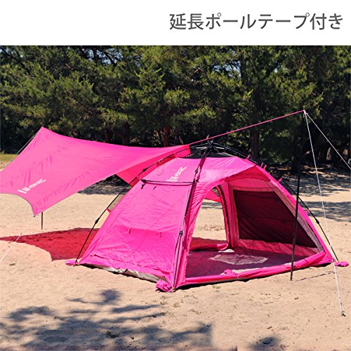 ワンタッチテントと連結で使いました。簡単です。テントのポールを両サイドに立ち上げ て使いましたが開放感があり快適でした。ポールはスチールですが少し細めなのでランタ ンフックは使えませんでした。ポールの耐久性は不明ですが、ランタンフックを使いたい 時は要注意ですね。
