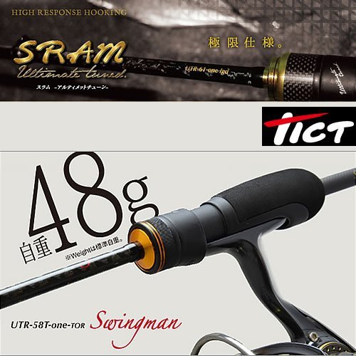 ティクトのスラム UTR-58T-one-TORです。先径0.9mmのチューブラーを搭載、軽量な自重も魅力のハイエンドロッドです。極細ティップがソリッドのような操作性の良さを再現。