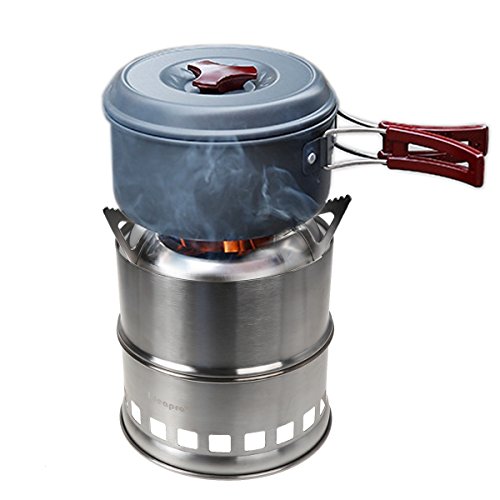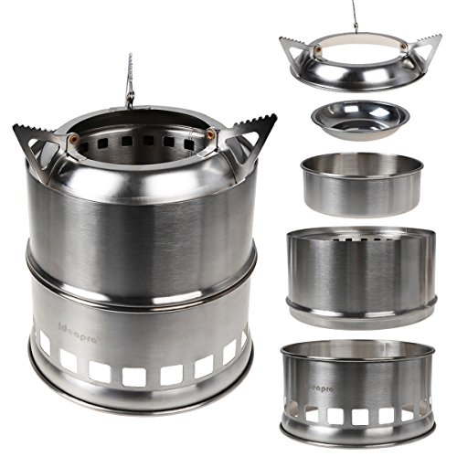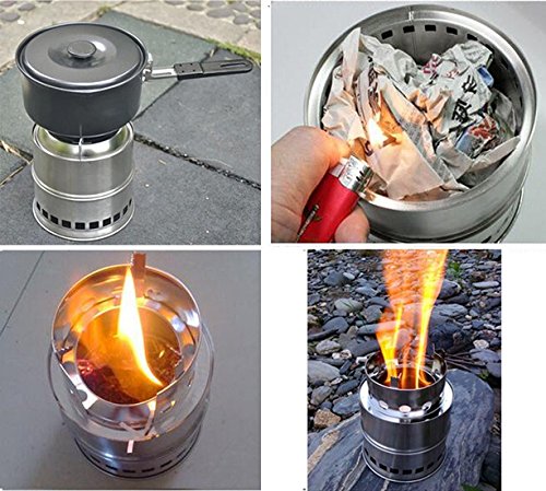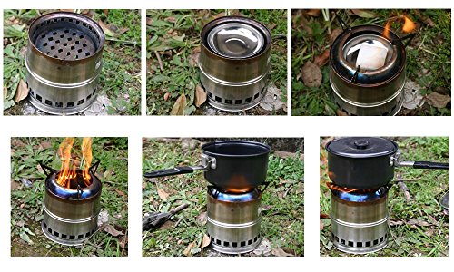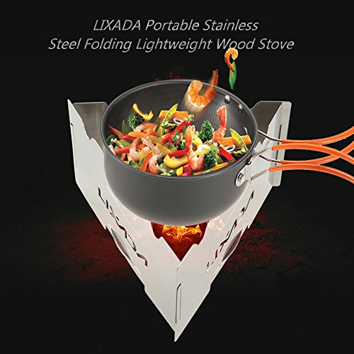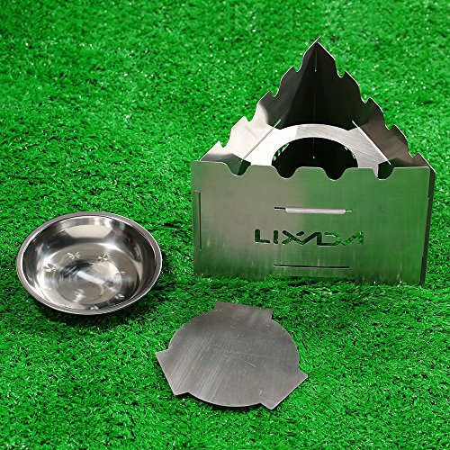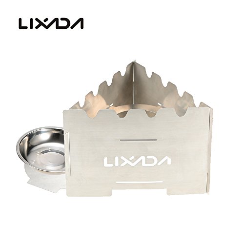 Lixada ステンレススチール キャンプ ウッド 薪 ストーブ キャンプファイヤー ウッドバーニング トレイ付き 固形燃料も使える 軽量 コンパクト 野外 キャンプ