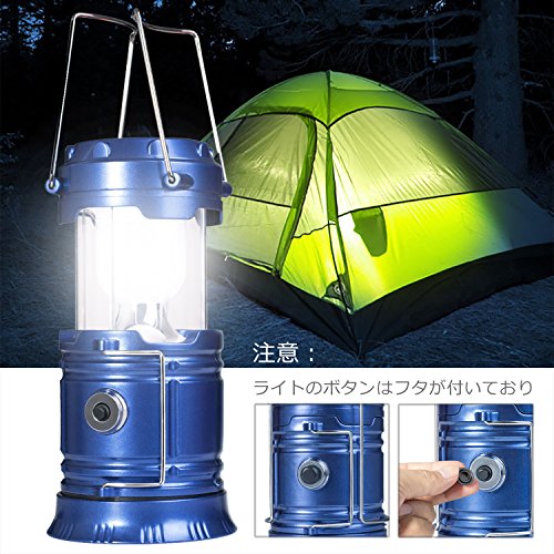 使い方も簡単です!! 写真のように点灯したい時は上の蓋を引き伸ばし、消灯したい時は縮めるだけです。 折りたたみ可能な持ち手も付いているためテント内に吊り下げることも可能です。 また、大きさも小型なためどこにでも持っていけますね。